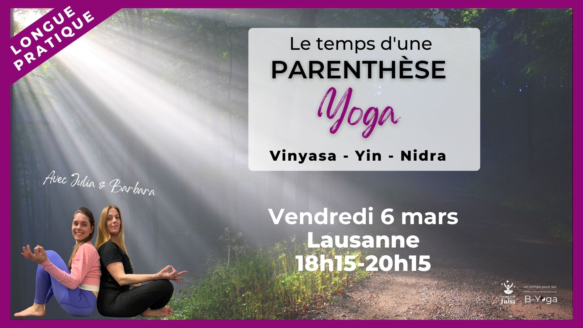Nous sommes heureuses de t’inviter à une LONGUE PRATIQUE de YOGA pour faire une petite parenthèse.
